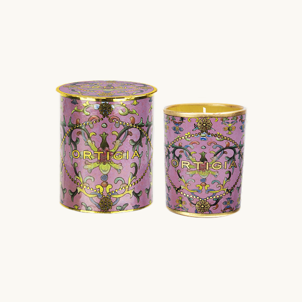 Doftljuset är generöst parfymerat med Ortigias signaturdoft Aragona. En doft med fylliga och mjuka noter av mandel, jasmin och ylang ylang.