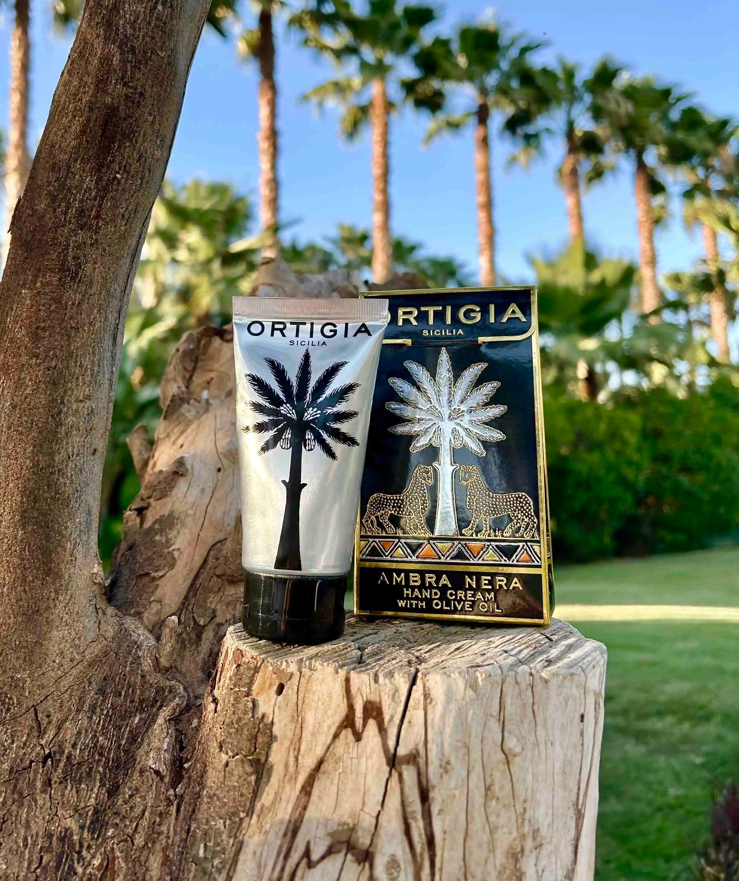 Ambra Nera handkräm har en långvarig och varm doft av kryddträ, mysk och amber.
