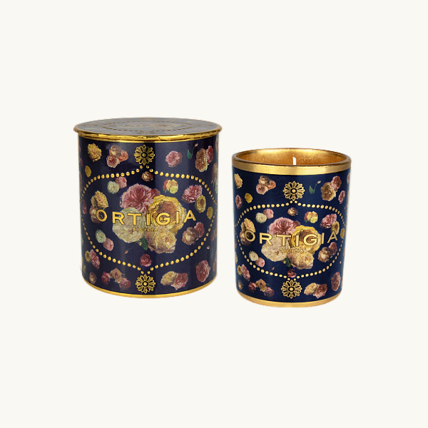 Doftljuset är generöst parfymerat med Ortigias signaturdoft Rose Antiche. En doft med delikata och friska noter av tidlösa trädgårdsrosor.